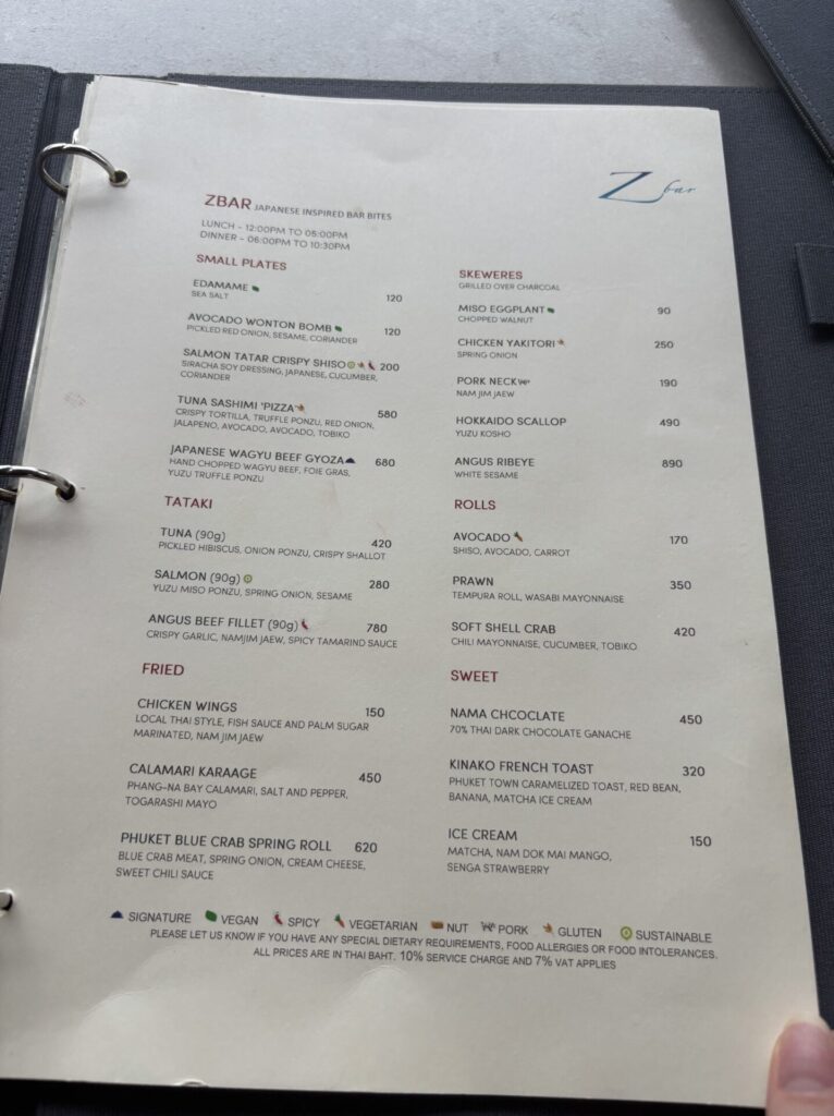 FHR特典で得た100ドルクレジットはインルームダイニングと、このあと紹介するZbarで利用しました。