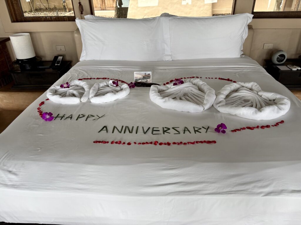 結婚記念日での利用とお伝えしていたので、ベッドメイキングが記念日仕様に。