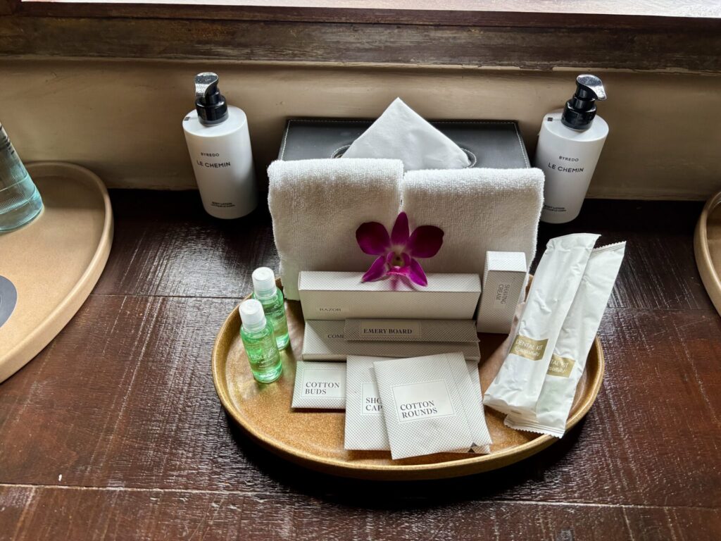 ホテルのバスアメニティやオリジナルグッズがカウンター付近で売られていました。