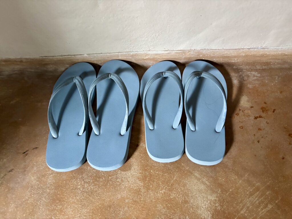 備え付けのカゴバッグ・ビーチサンダル、共用プールに行くのに便利です。
