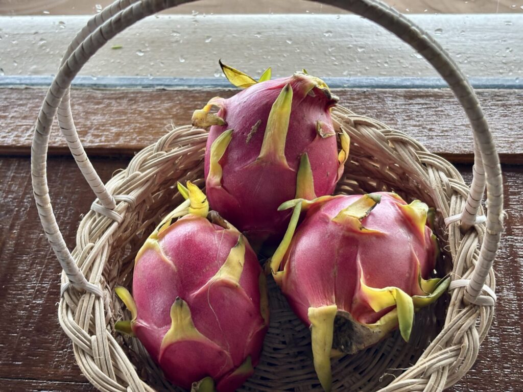 ウェルカムスイーツはドラゴンフルーツとチョコレート。