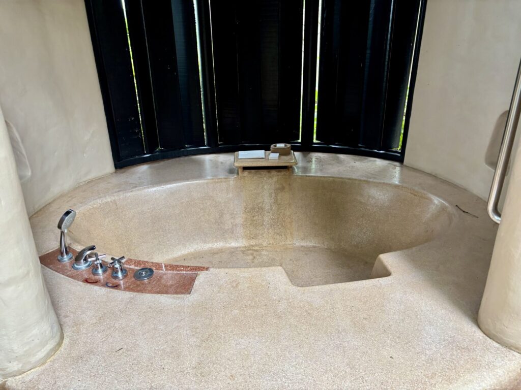 ヴィラの構成はプライベートプール・ベッドルーム・ウェットルーム・バスタブ(外)となってます。